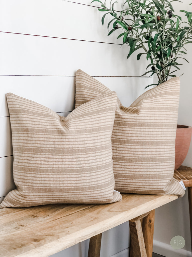 A gorgeous warm tone that reminds me of a morning coffee. A Canvas-feel by hand in this cotton polyester blend. Simple and sophisticated, perfect for any modern, contemporary, country or Hampton’s look with a less is more simple style.