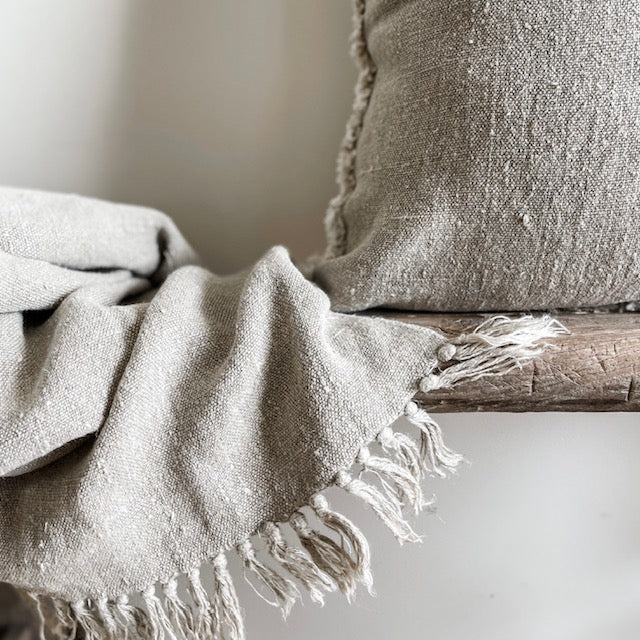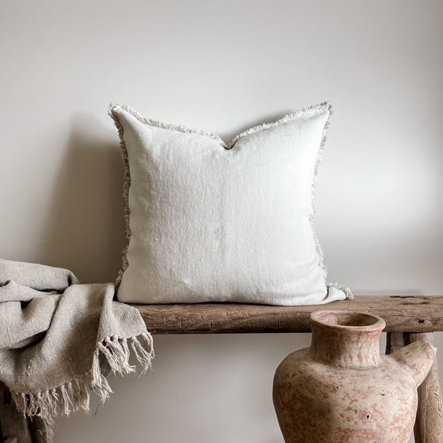 Briar Reversible Frayed Linen Cushion - Natural & White