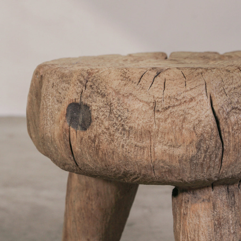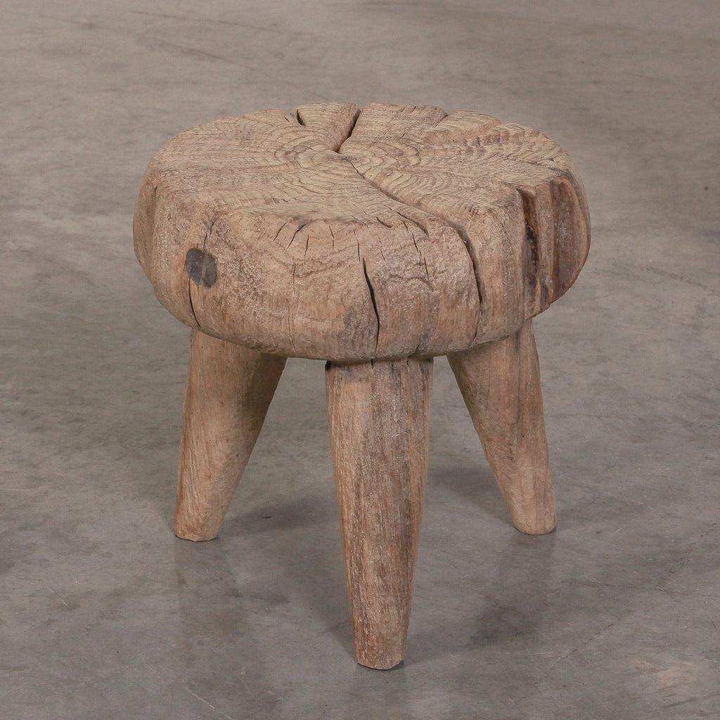 Handcrafted in Yunnan from Chinese oak, this petite vintage stool was once used as a seat in rural homes. With its 60–80 year history, every piece carries signs of time—soft wear, aged grain, and a balanced, symmetrical profile that now suits modern styling as a side table or display stand.