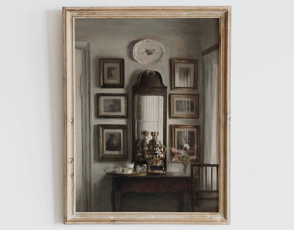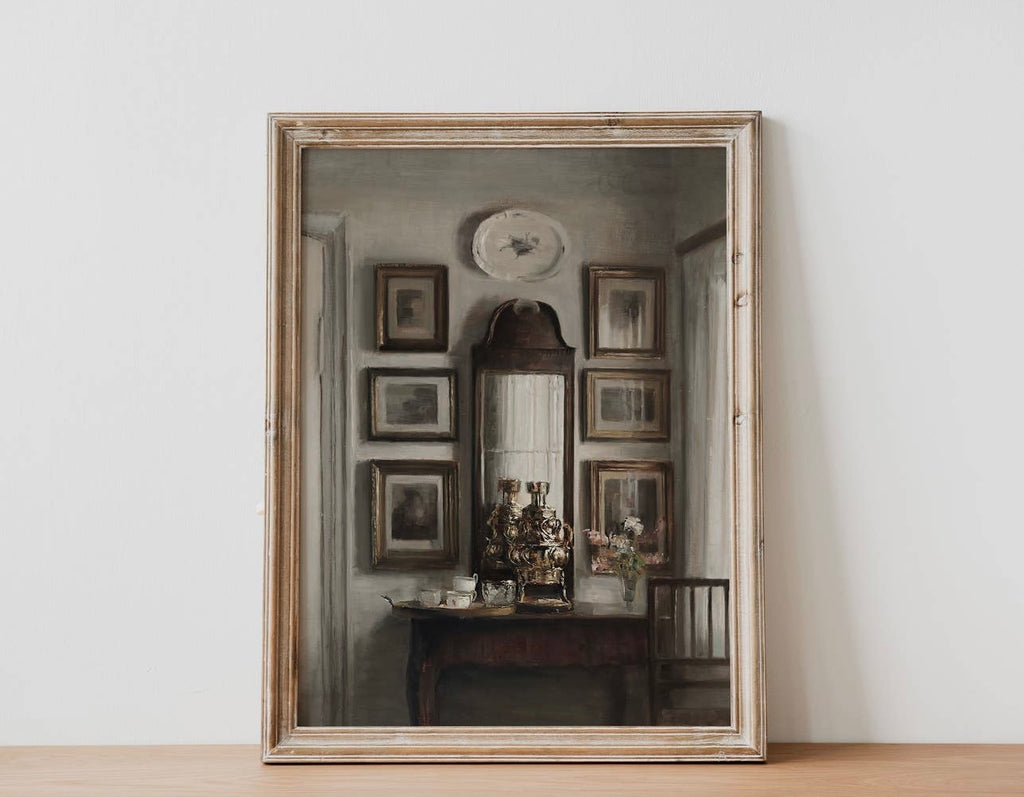 - B) Framed: Vintage-style grey frame - 28.5 x 23.5cm