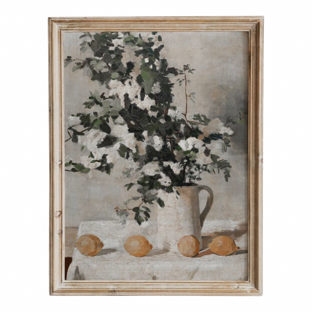 Step back in time and immerse yourself in the timeless beauty of this vintage still life art print. The exquisite piece captures nature’s bounty in a style reminiscent of classic still life paintings, creating a sense of nostalgia and serenity.