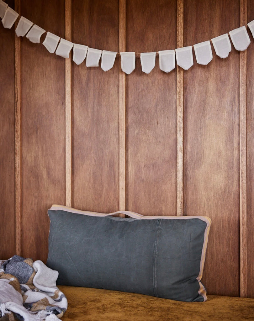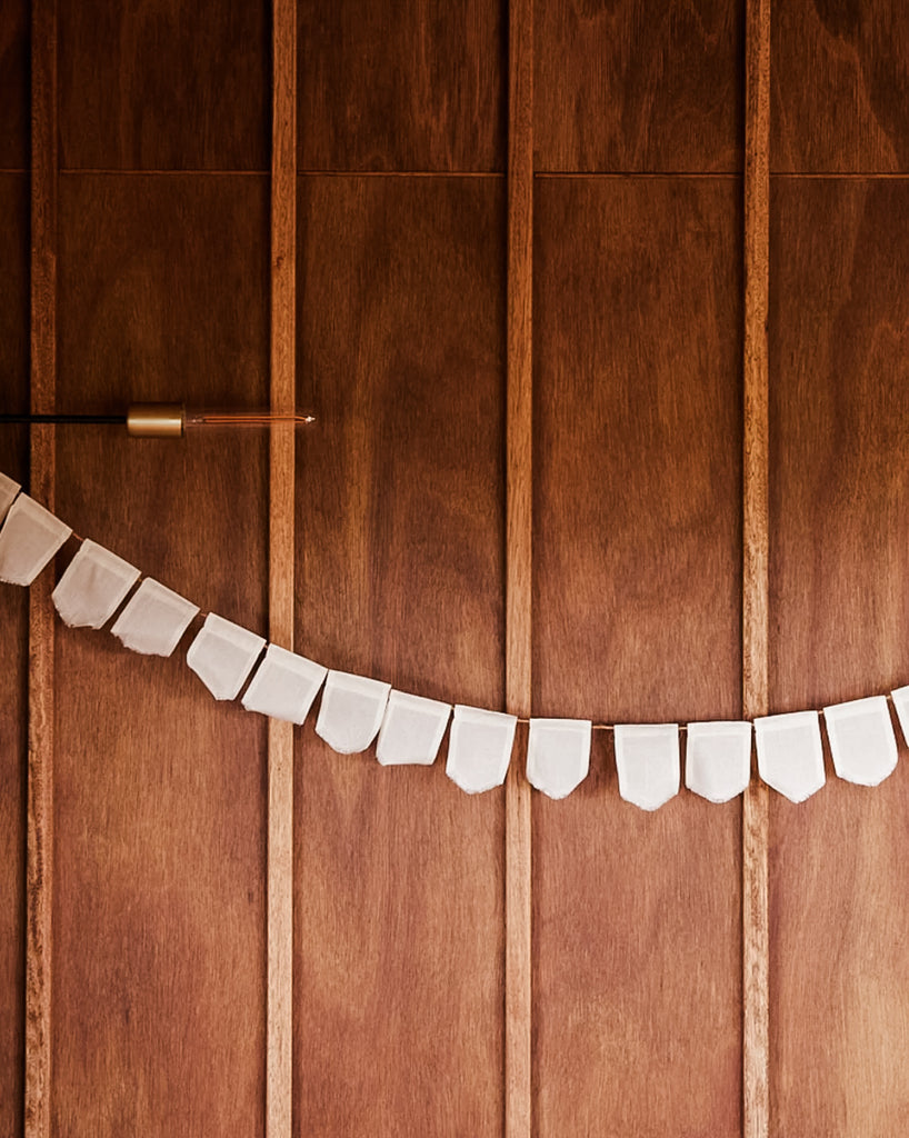 Our sweet little Shield Bunting is a great understated decoration. With its frayed edges, lightweight fabric, and cotton rope, it's the perfect decoration for that no-fuss, simple life celebration we all want so much.